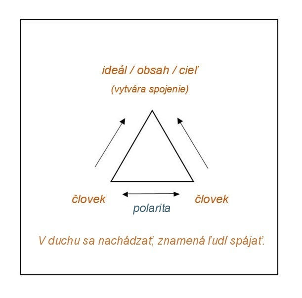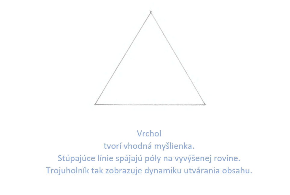 Heinz Grill: Vrchol trojuholníka tvorí vhodná myšlienka. Stúpajúce línie spájajú póly na vyvýšenej rovine. Trojuholník tak zobrazuje dynamiku utvárania obsahu.