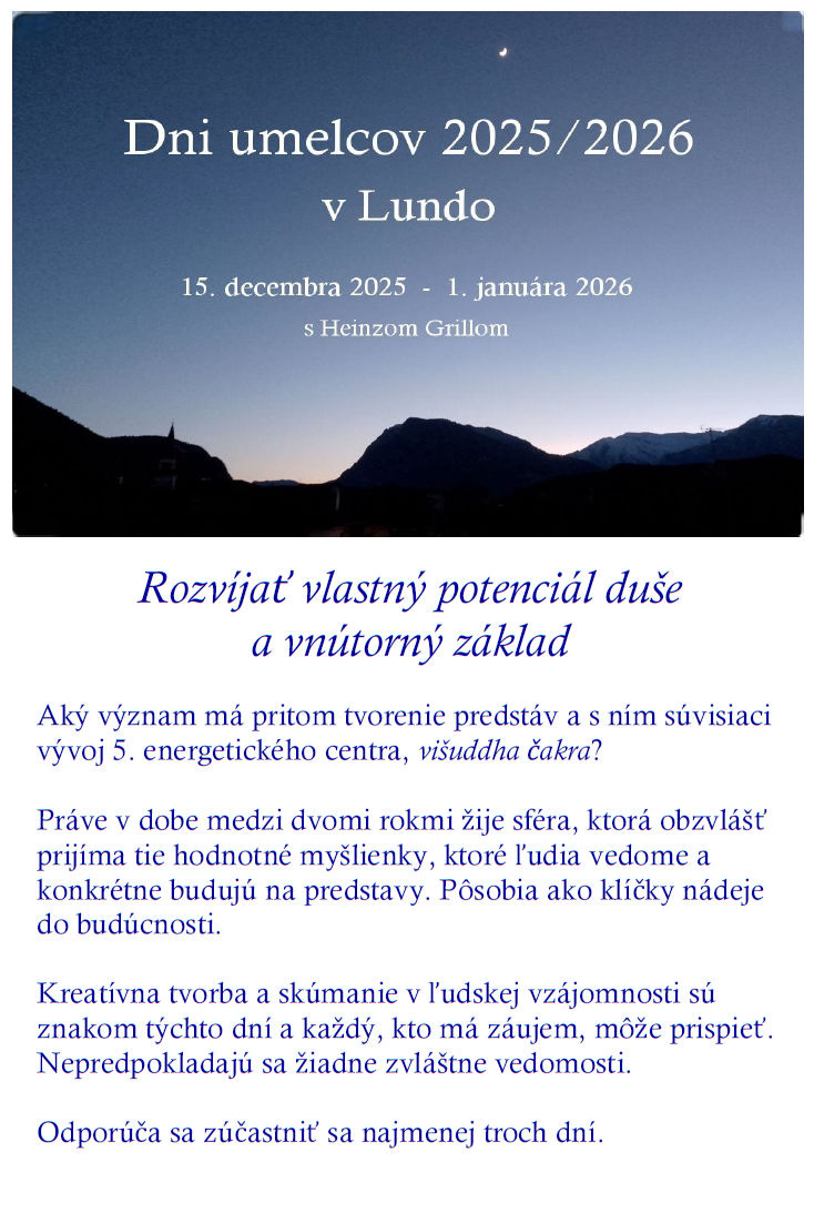 Dni umelcov sú určené pre všetkých, ktorí chcú spolu s Heinzom Grillom rozpracovávať umelecké inšpirácie, ako aj vízie budúcnosti na rok 2026.
