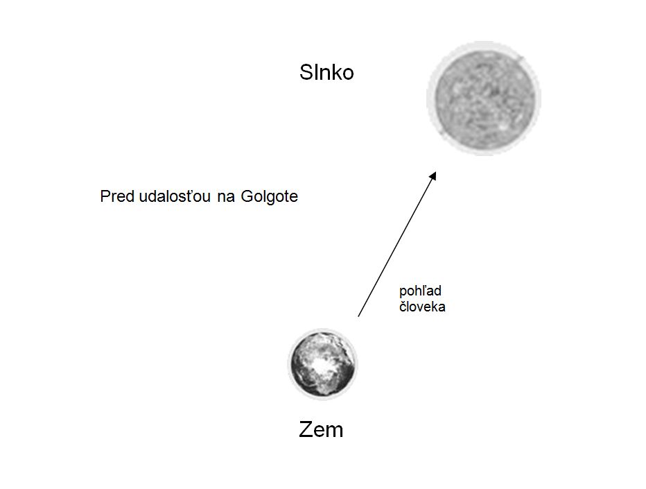 Kedysi pred mystériom na Golgote ľudstvo pozdvihovalo svoj zrak nahor k nebu a videlo tam v priestore žiariace Slnko. Kto bol zasvätený a dokázal vnímať nadzmyslovo, videl na Slnku bytosť, ktorá na prelome vekov vstúpila do Ježiša Nazaretského, pôsobila tu počas troch rokov a vykonala pre ľudstvo záchranný akt, darovala človeku novú formu fyzického tela. Toto pozeranie prebiehalo v priestore - zo Zeme na Slnko. Dnes by sme sa darmo pozerali na Slnko, tam už Krista nenájdeme. Spojil sa so Zemou a spôsobil tým celkom prevratné zmeny.