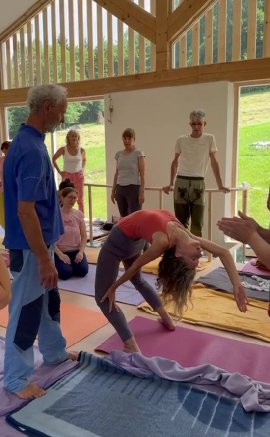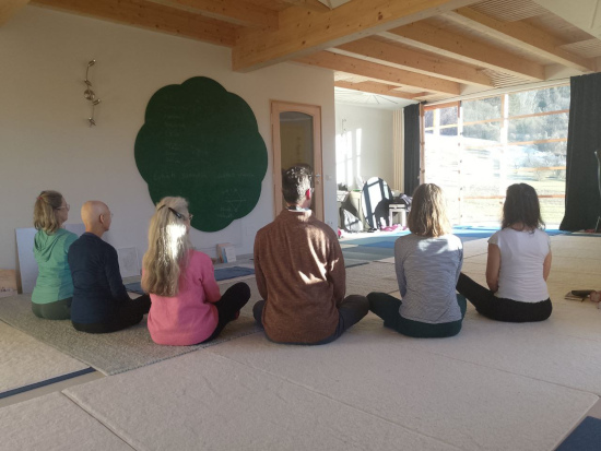 Tu pri jogovom cvičení je konkrétna meditatívna myšlienka bezprostredne uvedená do praxe.