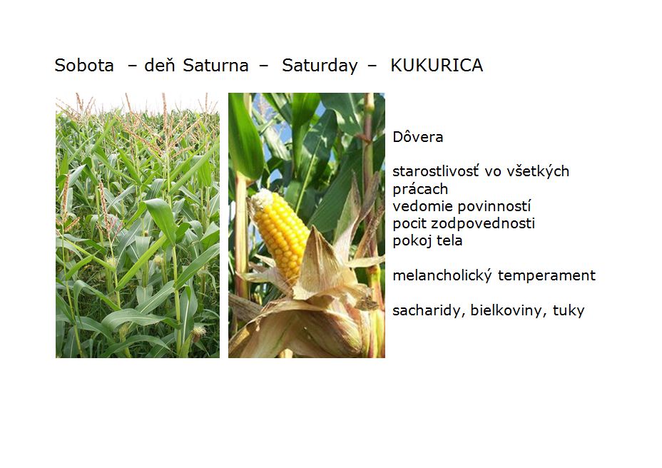 Vďaka výrazným vlastnostiam kukurice, priraďujeme ju k obiliu. Kukuričné zrná rastú v klasoch a nesú kvality Saturna.