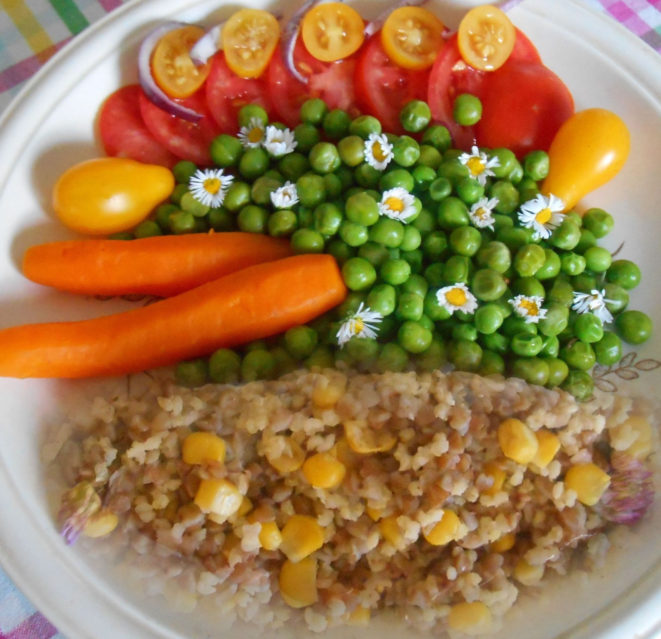 Na obed sme jedli polievku z koreňov cvikle, petržlenu a zeleru, nakrájaných na kúsky. V hlavnom jedle sme sa stretli s potravinami, ktoré môžeme mať na tanieri v takých celých formách, v akých prirodzene rastú: semená pohanky so zrnkami kukurice, celé korene mrkvy, celé semená hrášku, plody rajčín ... bavili sme sa hľadaním aj ďalších možností ako je ryža, redkvičky a mnohé iné. Na jednom tanieri sme zároveň mali všetky časti rastliny (rastlinné orgány) napríklad: koreň (mrkva), stonka (pór), listy (šalát), kvety (karfiól), plody (rajčiny), semená (pohanka), aby to, čo sme videli pred sebou na tanieri, tvorilo zmysluplný celok.